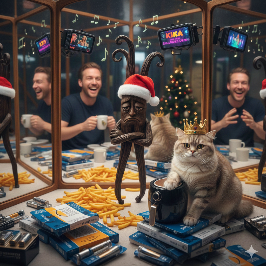 Wir starten „besinnlich“: Während wir im Radio krampfhaft nach Sendern suchen, die uns vor dem alljährlichen Mariah-Carey-Trauma bewahren, diskutieren wir über die Vorzüge von Weihnachts-Playlists ohne Ohrenschmerzen. Es geht um skurrile Wetten unter Kollegen und die bahnbrechende Erkenntnis, dass Tonkabohnen auf Pommes zwar experimentell klingen, aber eigentlich nur nach zutiefst enttäuschter Vanille schmecken.